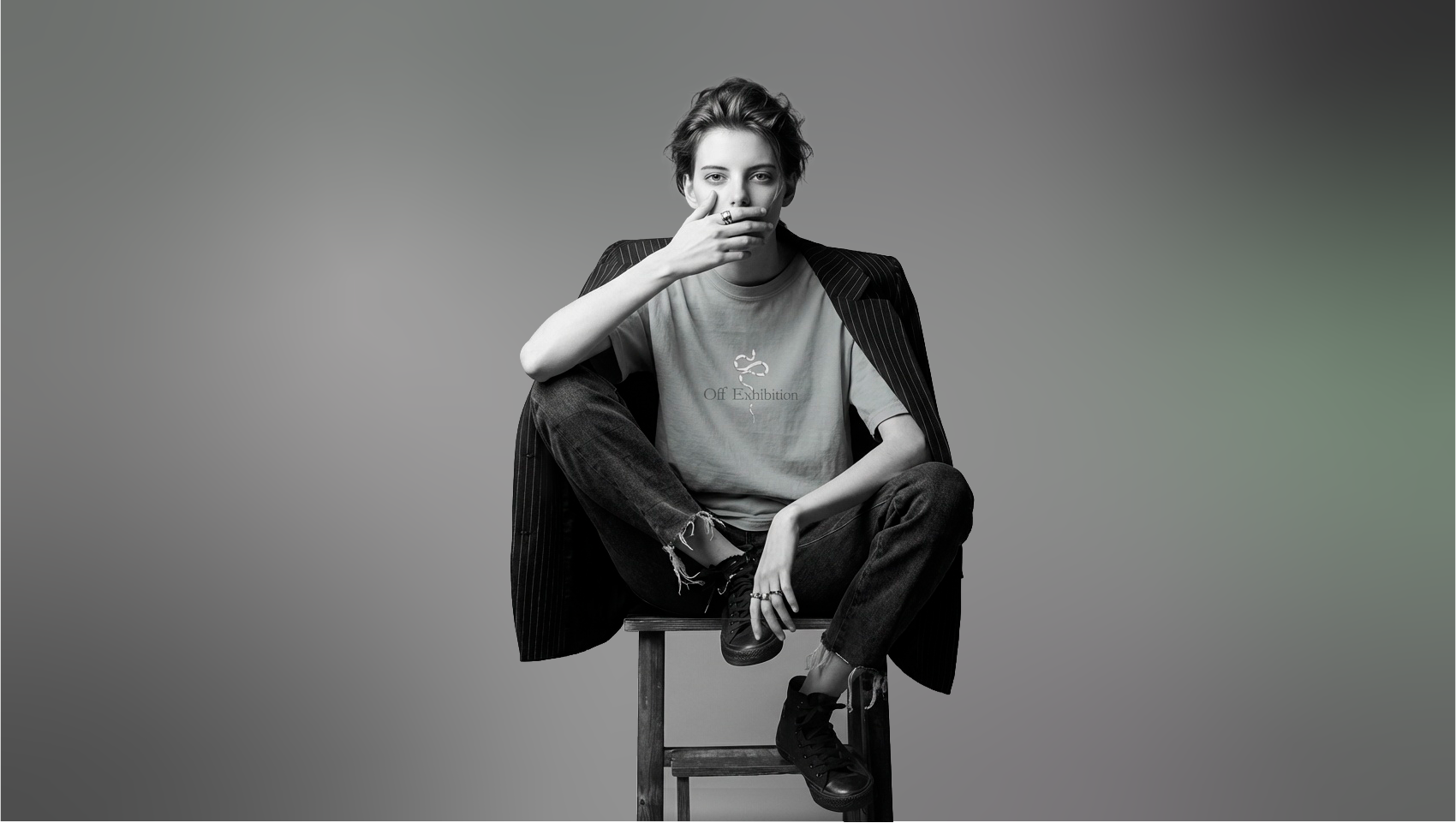 Unisex. Sweater firma blanca. Negro Vintage -